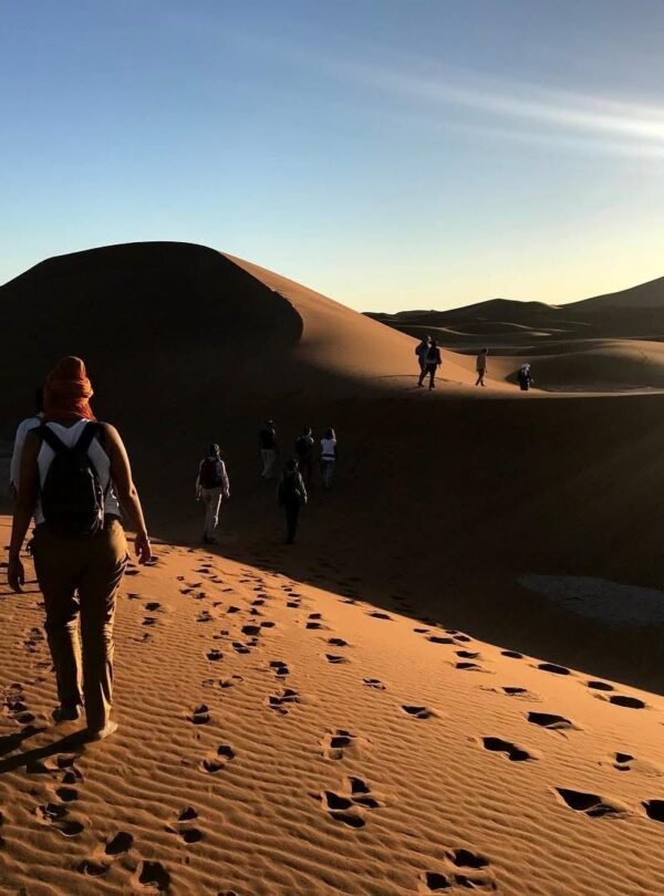 Un voyage immersif à pied au cœur du Sahara marocain. De Marrakech aux grandes dunes d’Erg Chegaga, cette expérience combine trekking dans le désert, campings sauvages, nuits étoilées et l’authentique hospitalité saharienne. Parcourez les douces dunes dorées, découvrez d’anciens sentiers désertiques et reconnectez-vous avec la nature dans l’un des paysages les plus époustouflants du Maroc.